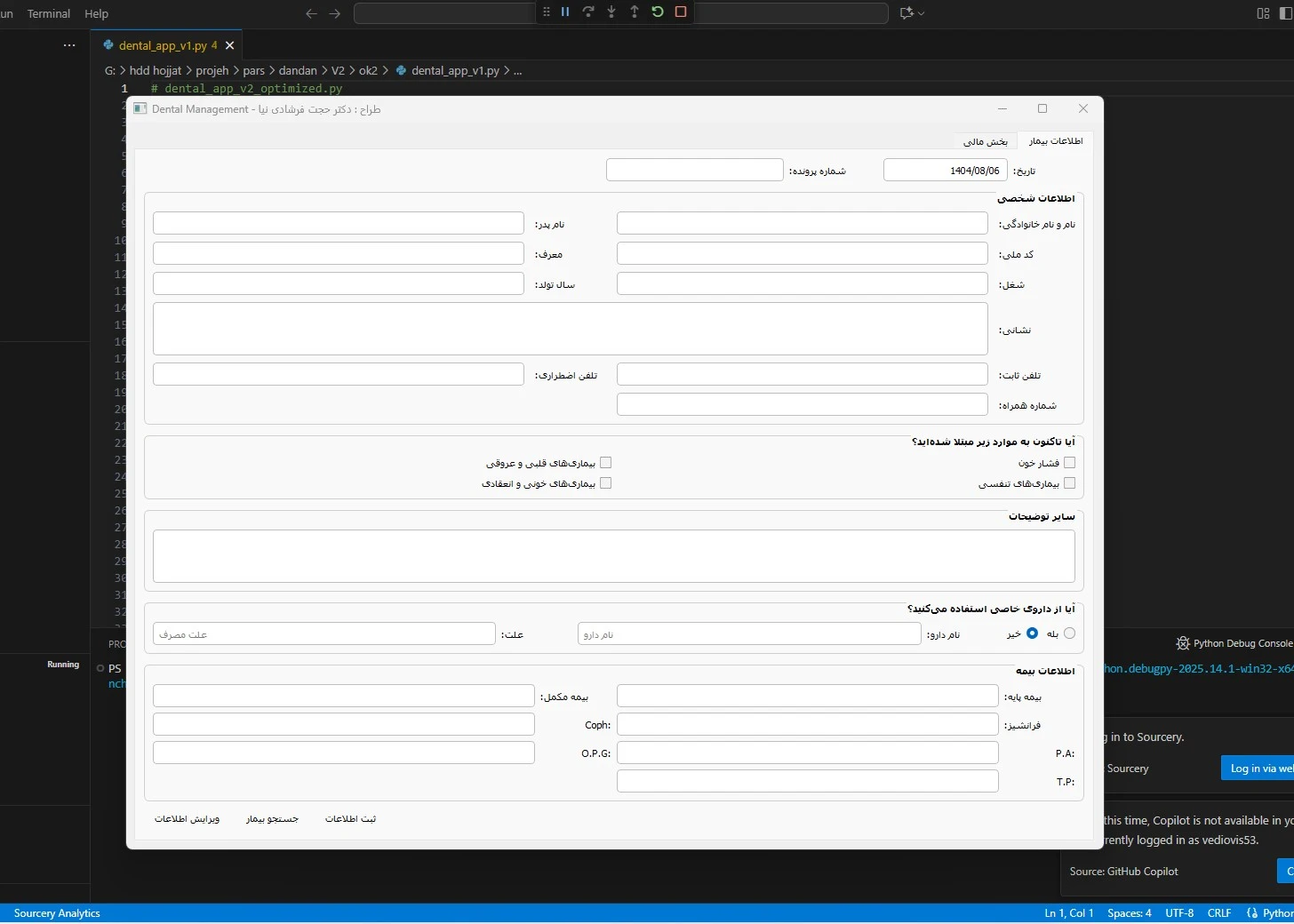 این برنامه به زبان پایتون نوشته شده است. دو بخش دارد ثبت بیمار و امور مالی.