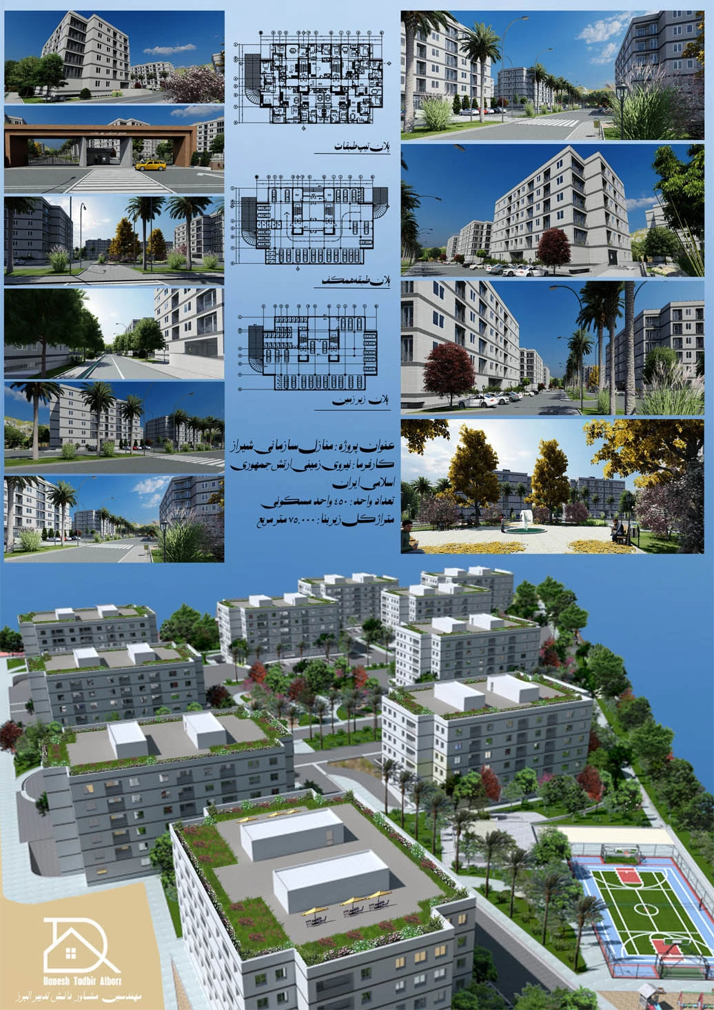 مجتمع مسکونی شیرازه، یک پروژه بزرگ شامل 450 واحد مسکونی بر روی زمینی به وسعت 75,000 متر مربع است که توسط سازمان مسکن ارتش سفارش داده شد
