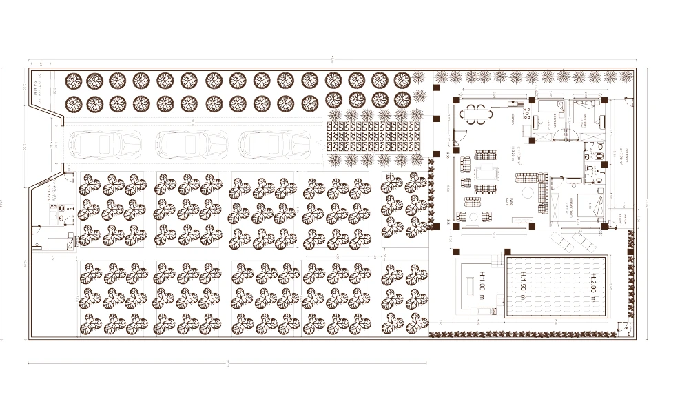 کل محوطه با هدف تبدیل به باغی سرسبز و دلنشین، شامل درختان هلو و آلبالو برنامهریزی شده است، تا حس نزدیکی به طبیعت و آرامش روزمره را برای ساکنان فراهم آورد