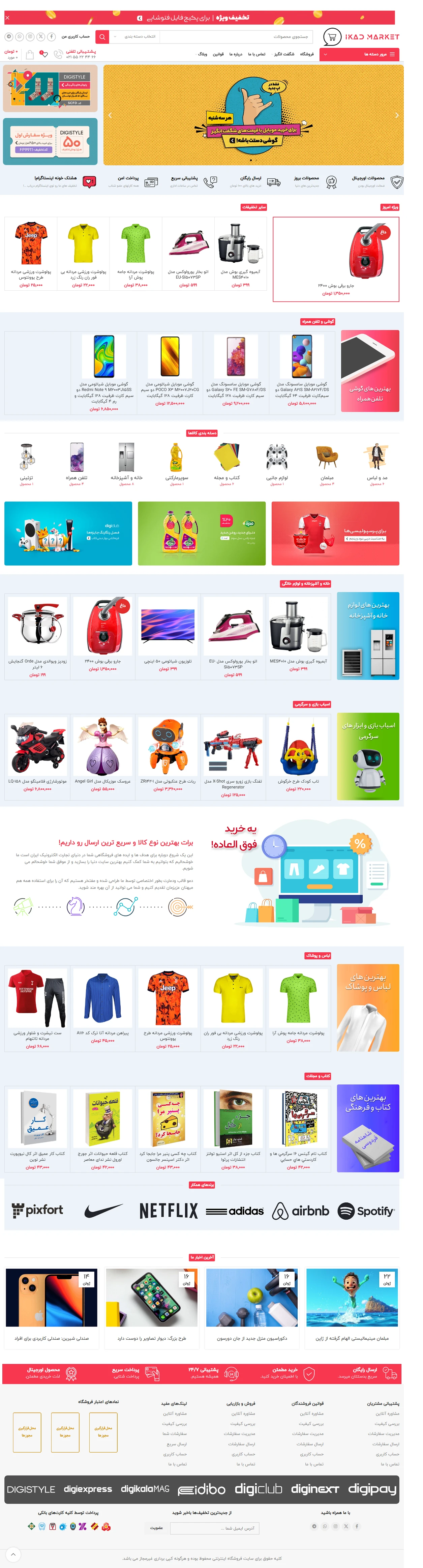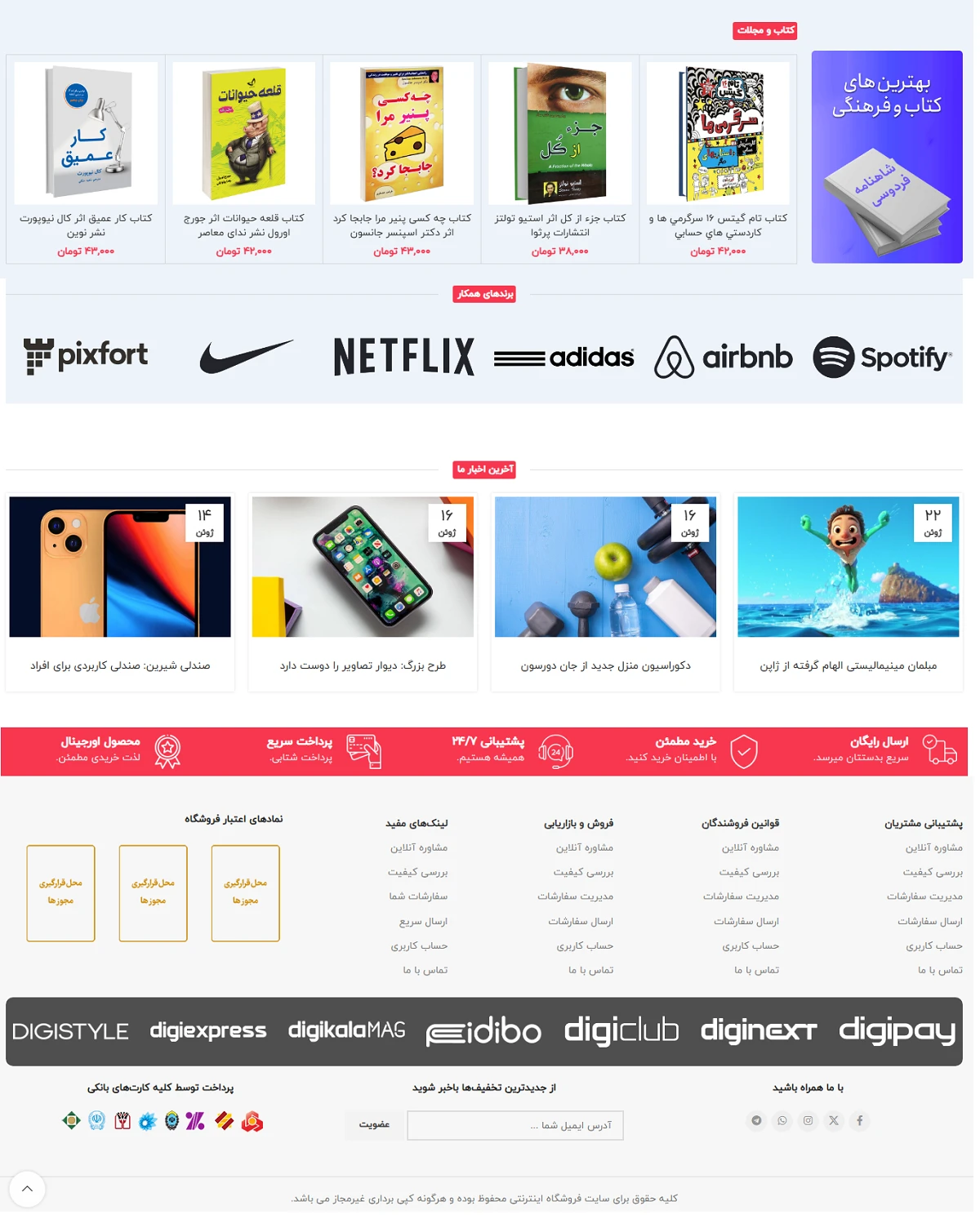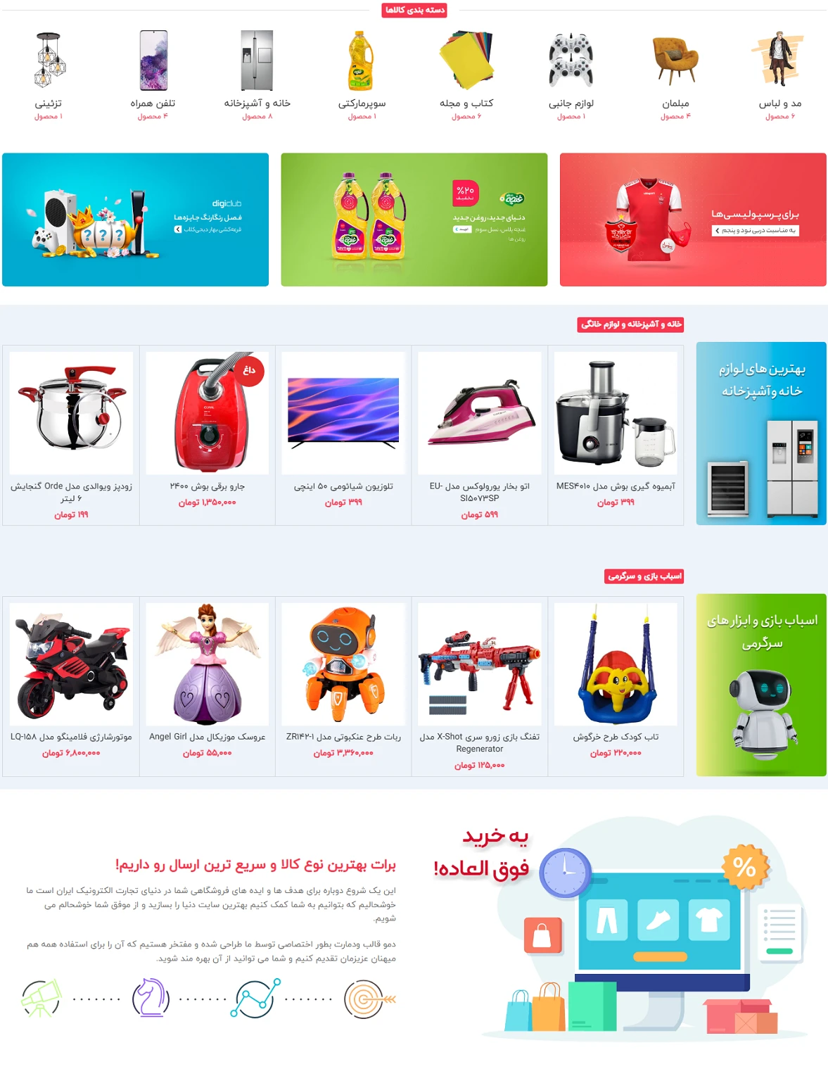 نمونه طراحی فروشگاه اینترنتی که برای فروش هر نوع محصول اینترنتی و مطابق با استانداردها و اصول UI/UX که رابط کاربری و تجربه کاربری هستند، طراحی شده است تا تجربه دلنشینی برای بازدیدکنندگان سایت ایجاد نماید.