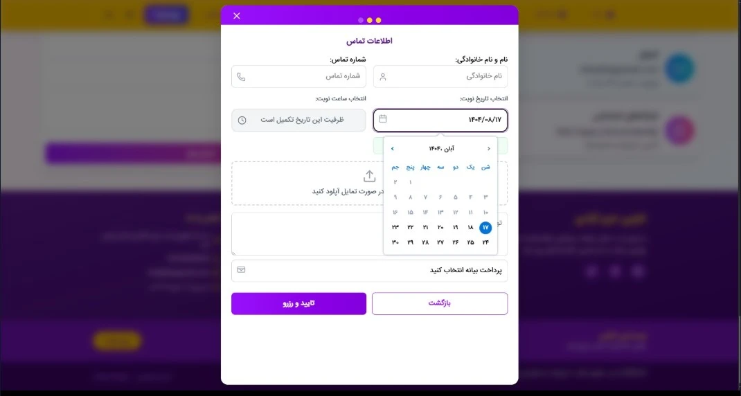 • سیستم نوبتدهی آنلاین با قابلیت انتخاب خدمات و پرسنل