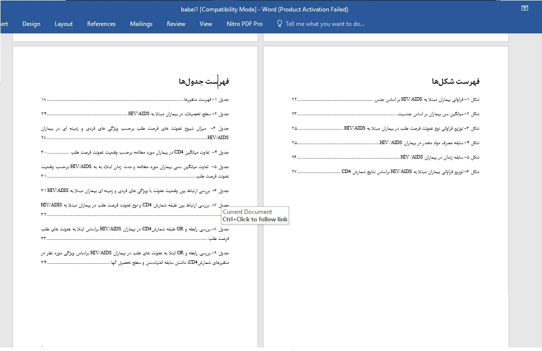 نمونه کار مربوط به فصل 4 پایان نامه پزشکی است در این گزارش براساس دستورالعمل تهیه پایان نامههای دانشگاه مربوطه؛ ابتدا استایل و سایز فونتهای متن، عناوین و فصول و ... تعریف، صفحهبندی صورت گرفته سپس گزارش نگارش شده است. بعد از تحلیل داده ها جداول از SPSS و نمودارها از Excel در داخل گزارش ایمپورت شدند و شماره گذاری جداول و نمودارها با استفاده از کپشن صورت پذیرفته است. همچنین فهرست منابع که در endnote وارد و در گزارش استفاده شده است را ملاحظه می کنید. فهرست مطالب نیز به صورت خودکار تهیه شده است.