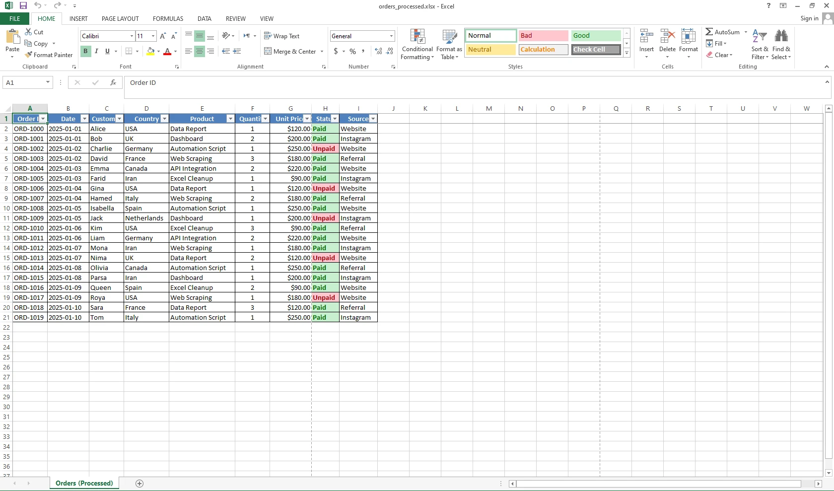 اتوماسیون پردازش فایل اکسل و تولید گزارش حرفهای با Python