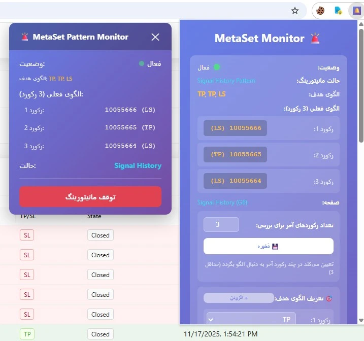 این اکستنشن برای مرورگر کروم و سایت metaset.ai ایجاد شده است که براساس نیاز کارفرما در معاملات روزانه خود این ویژگی ها به آن اضافه شده است: