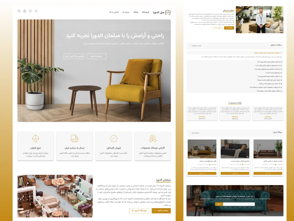 سایت فروشگاهی مبلمان با استفاده از وردپرس طراحی شده و امکاناتی چون فروش اقساطی با افزونه Deposits و صفحات فروشگاهی حرفهای با افزونه Shop Engine به آن اضافه شده است.