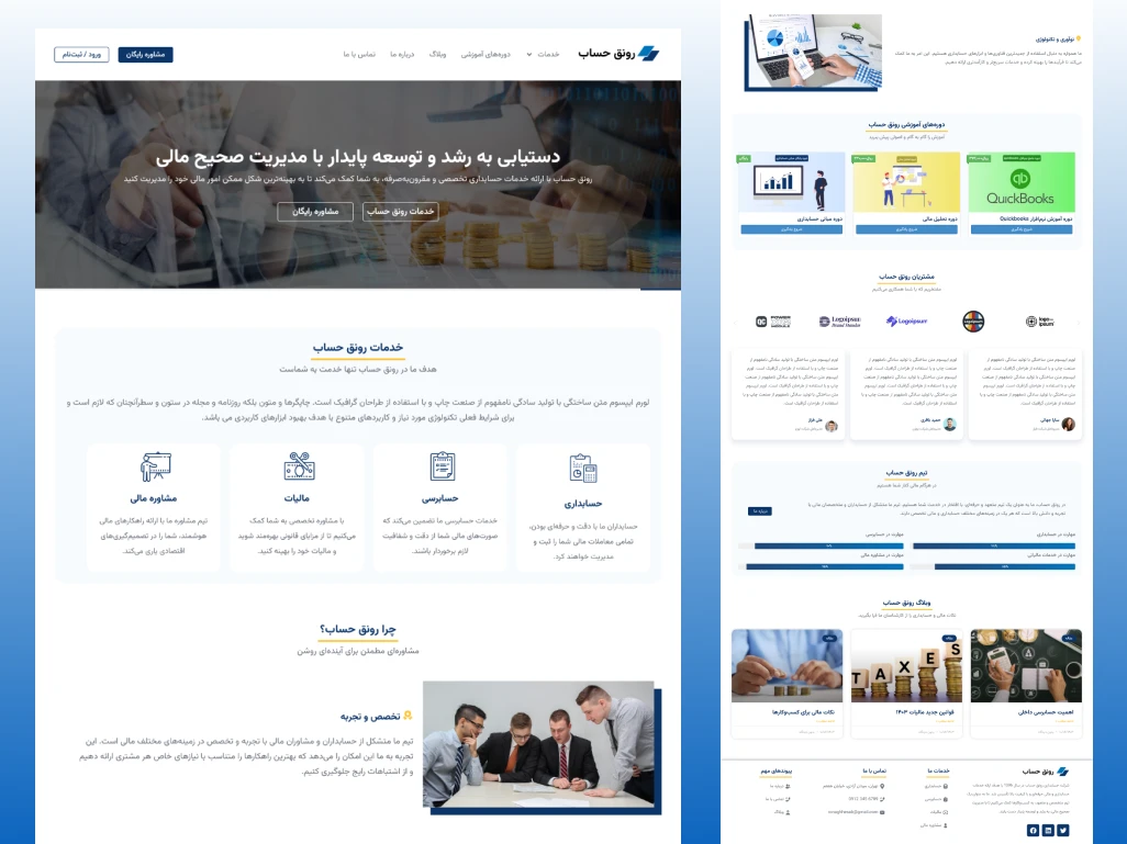 سایت شرکت حسابداری با استفاده از وردپرس طراحی شده و امکان فروش و برگذاری دورههای آموزشی آنلاین با استفاده از پلاگین LearnDash به آن افزوده شده است.