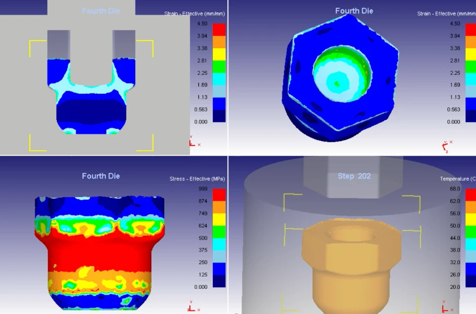 سطح مقطع نمونه حاصل از شبیه سازی کله زنی در تولید مهره سربسته یا cap nut