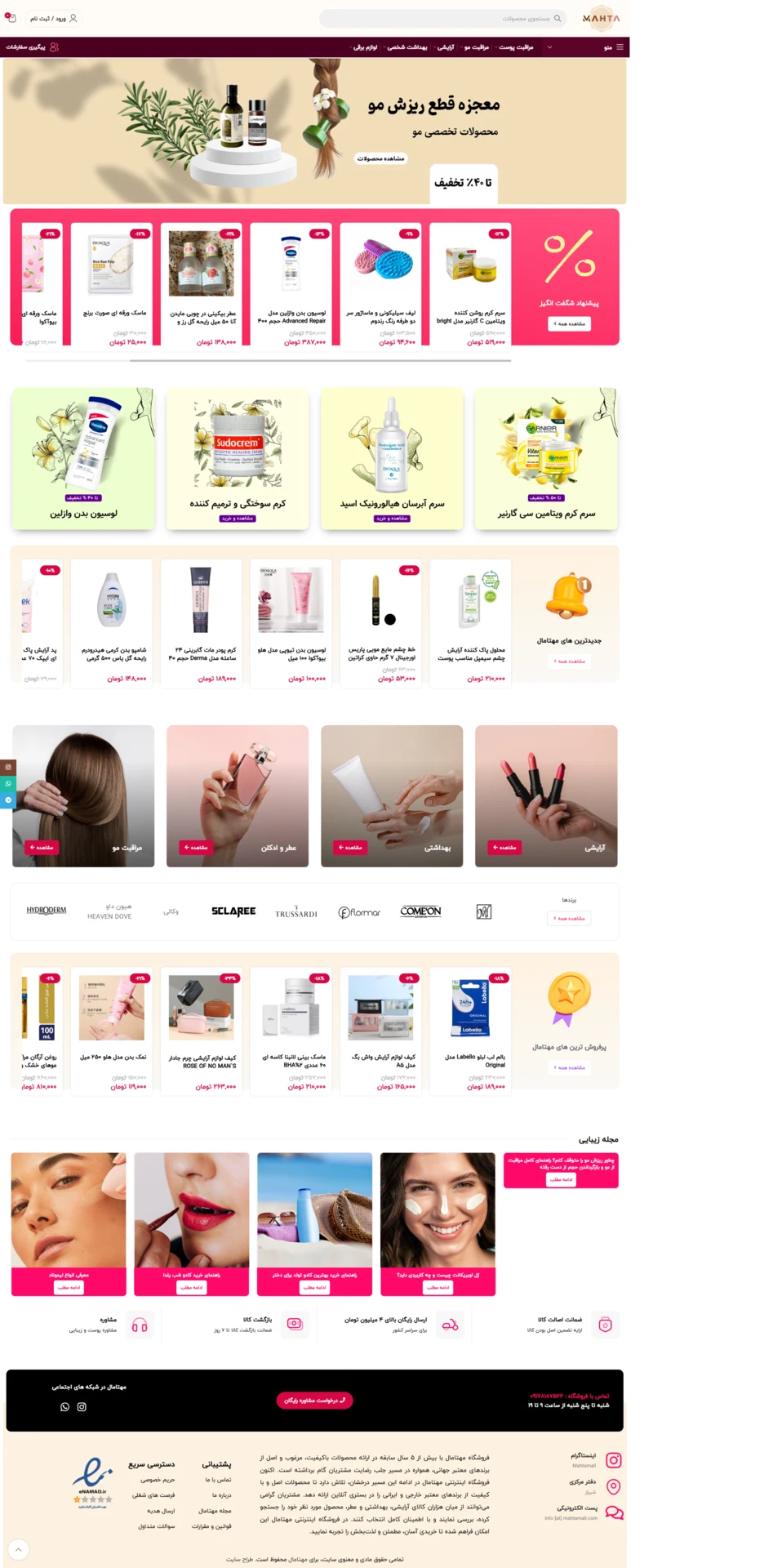 طراحی سایت ارایشی بهداشتی باری فروشگاه مهتا مال