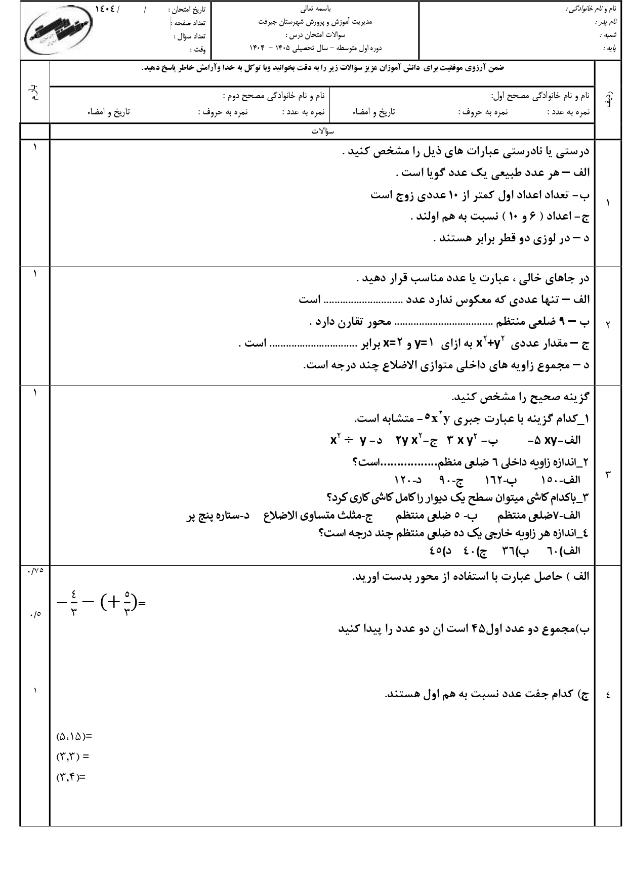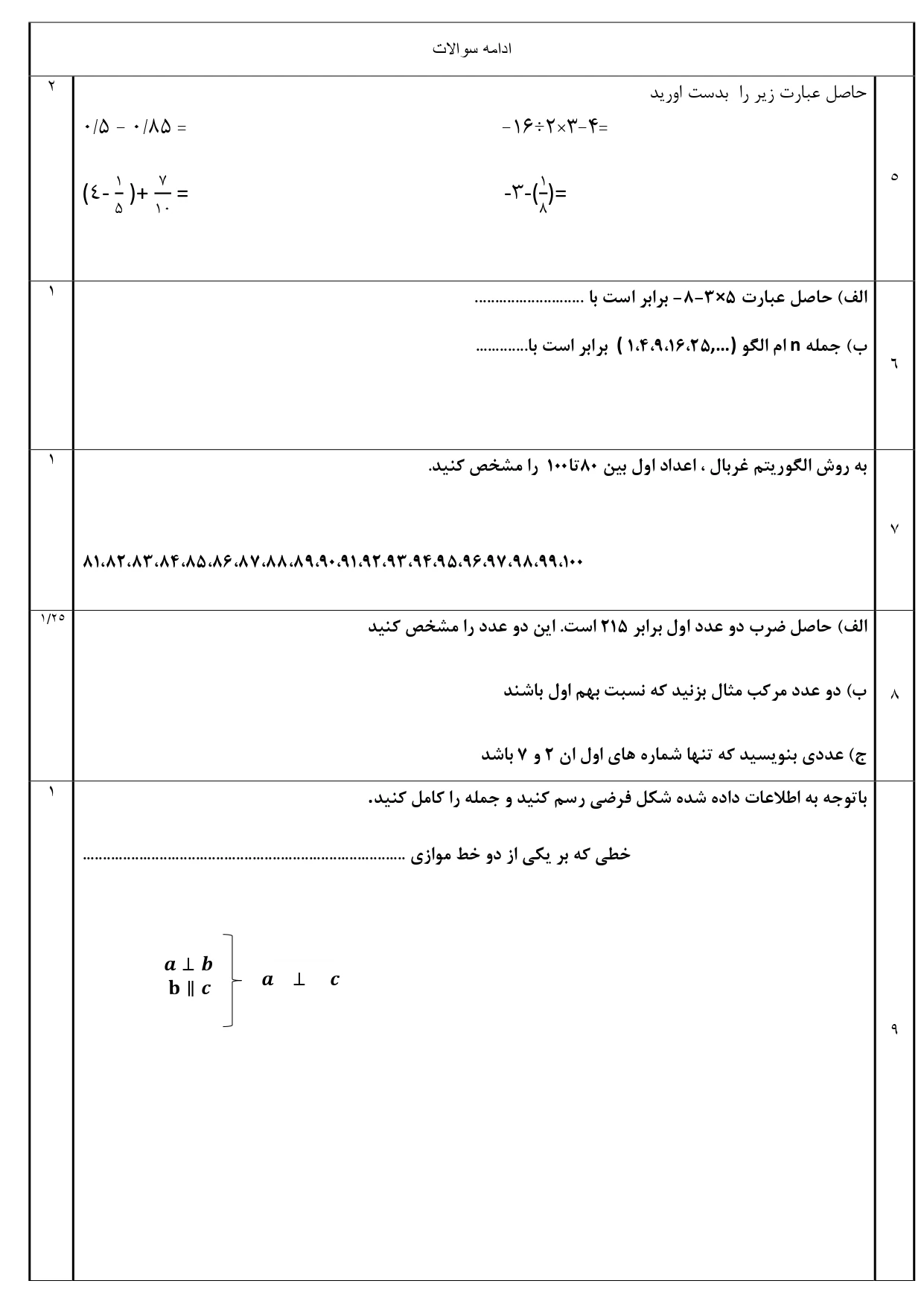 تایپ سوال امتحانی فرمول دار در فرم برگه امتحانی