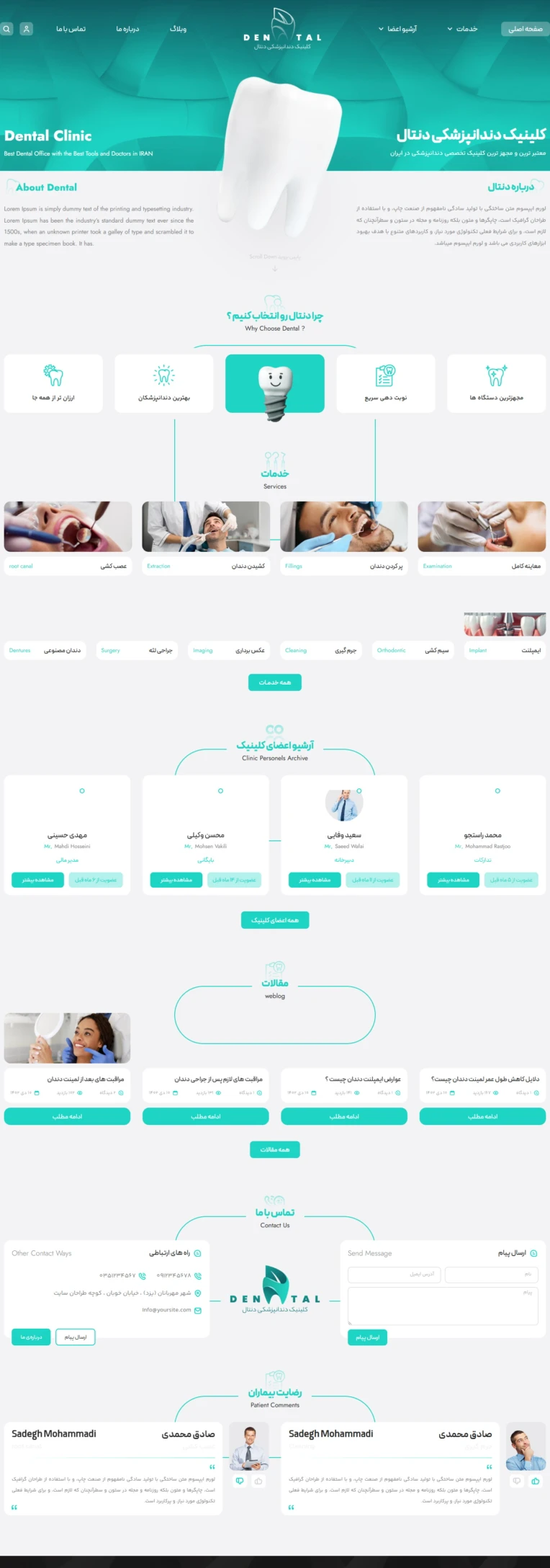 این سایت رزرو نوبت دندانپزشکی تخصصی طراحی شده است و کار بسیار گرافیکی و تخصصی هست ،ک با مهارت ها و تجربیات زیاد ساخته شده است ک قابلیت رزرو نوبت و خدمات به صورت ویژه را دارد.