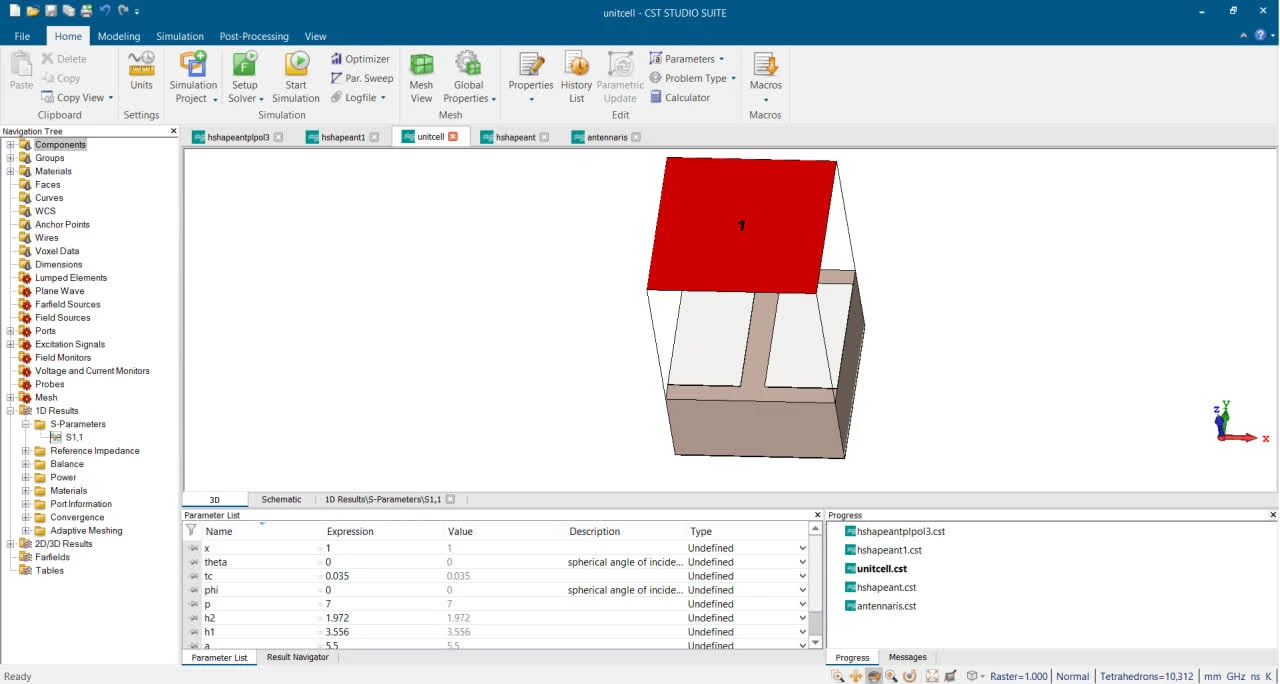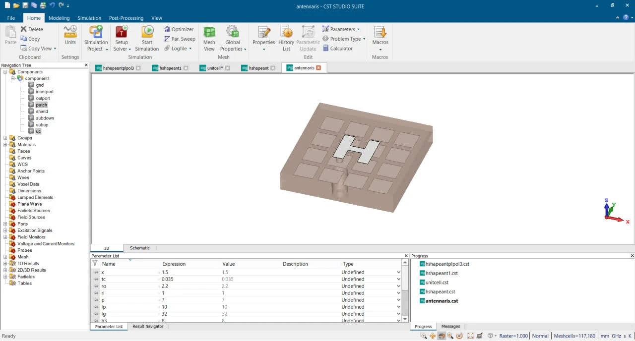 طراحی یونت سل، متامتریال و متاسرفیس برای افزایش بهره و کوچک سازی آنتن در نرم افزار cst
