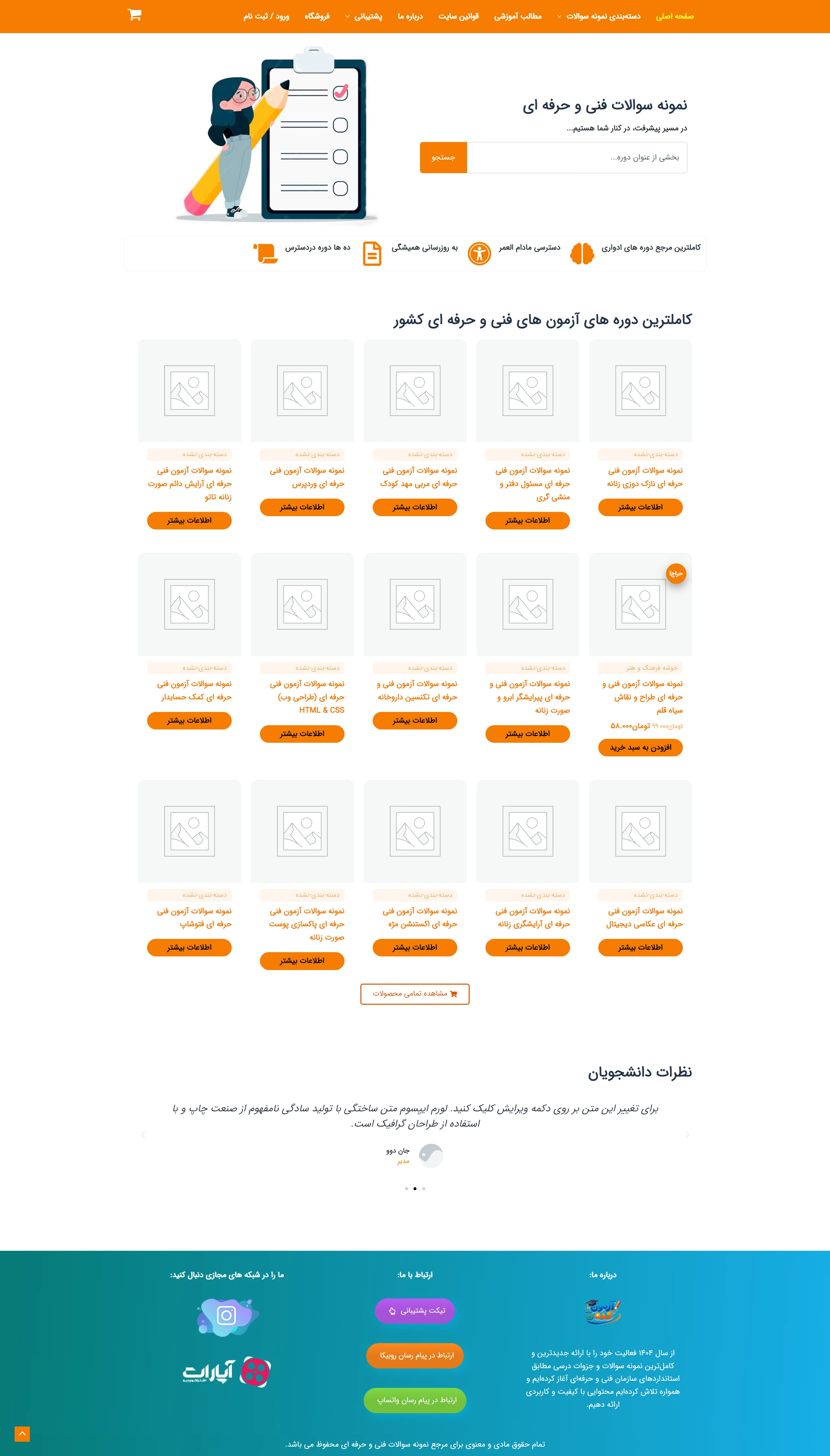 هدف کارفرما ایجاد بستری متمرکز برای دسترسی آسان هنرجویان و داوطلبان به نمونه سوالات، آزمونهای تمرینی و فایلهای آموزشی قابل دانلود بود.