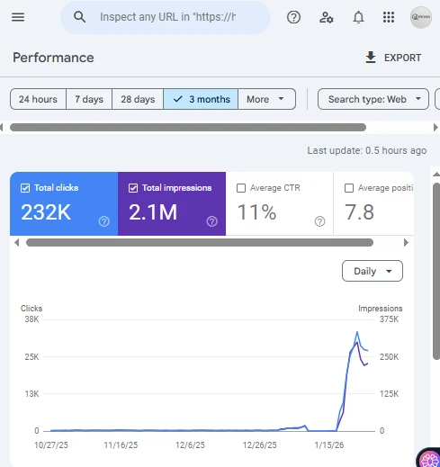 نتیجه استراتژی اصولی و درست سئو، روند کاملا صعودی و پایدار Impressions و کلیک های ارگانیک سایت = افزایش فروش