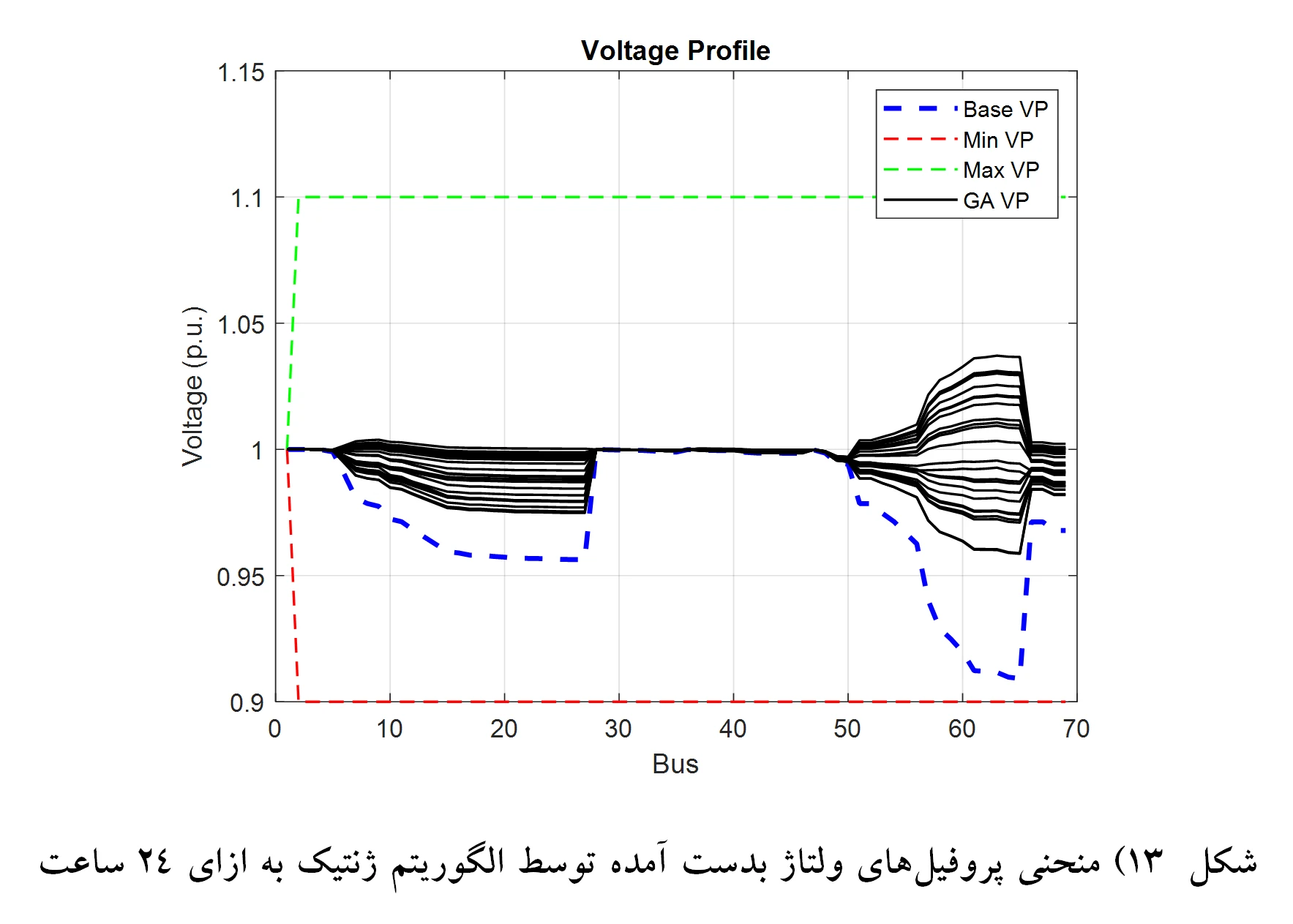 در این شبیهسازی، جایابی بهینه ایستگاههای شارژ و دشارژ و برنامهریزی بهرهبرداری بهینه خودروهای برقی در یک شبکه توزیع مورد بررسی قرار گرفته است. فاکتورهای موثر در انتخاب محل و میزان شارژ و دشارژ بهینه در ایستگاهها ترکیبی از مسائل فنی و اقتصادی میباشد. درخصوص مسائل فنی، حداقلسازی تلفات، حداقلسازی افت ولتاژ در فیدرها و یکنواختسازی منحنی بار شبکه مدنظر قرار گرفته است. در زمینه اقتصادی، جایابی ایستگاهها و میزان شارژ و دشارژ به نحوی صورت پذیرفته است که هزینههای شارژ و دشارژ در ایستگاهها و هزینه کل پرداخت شده بابت خرید توان به حداقل مقدار ممکن برسد. به منظور مدیریت بار در سمت مصرفکننده و همچنین یکنواختسازی منحنی بار، برنامه پاسخ تقاضای قیمت محور درنظر گرفته شده و در شبیهسازیها پیادهسازی شده است. جهت یافتن نقطه کار بهینه از الگوریتم فراابتکاری ژنتیک، استفاده شده است. کلیه شبیهسازیها در نرم افزار MATLAB انجام شده و به منظور ارزیابی روشهای ارائه شده، صحتسنجی در هر قسمت بر روی سیستم تست استاندارد IEEE با تعداد شین 69 صورت پذیرفته است.