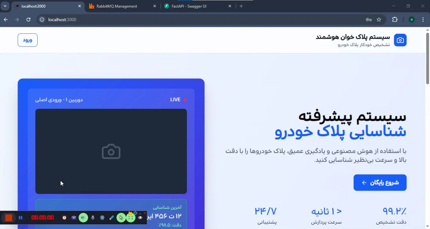 داشبورد پروژه پلاک خوان فرانت با next js , بکند با python (fast api)