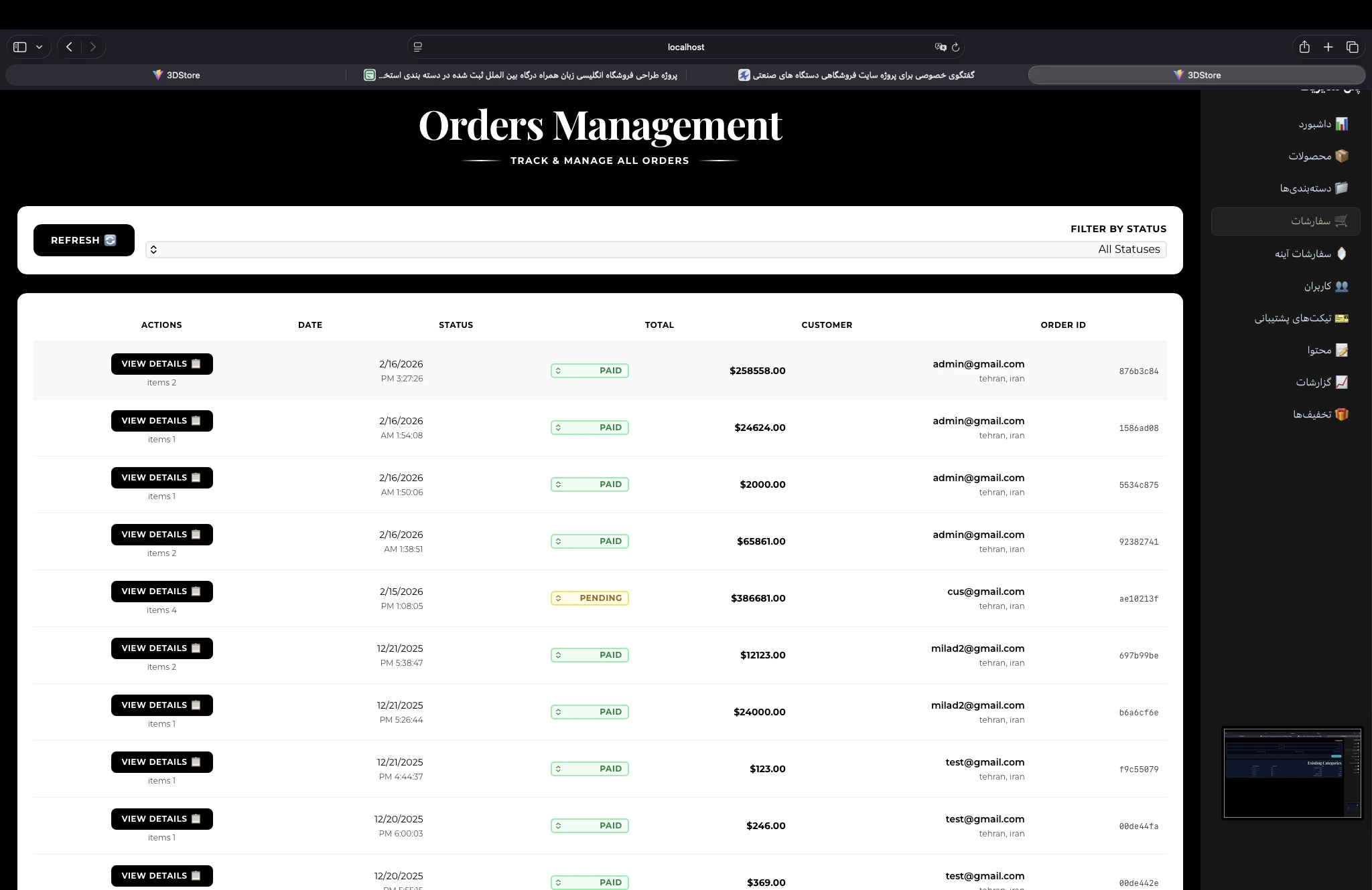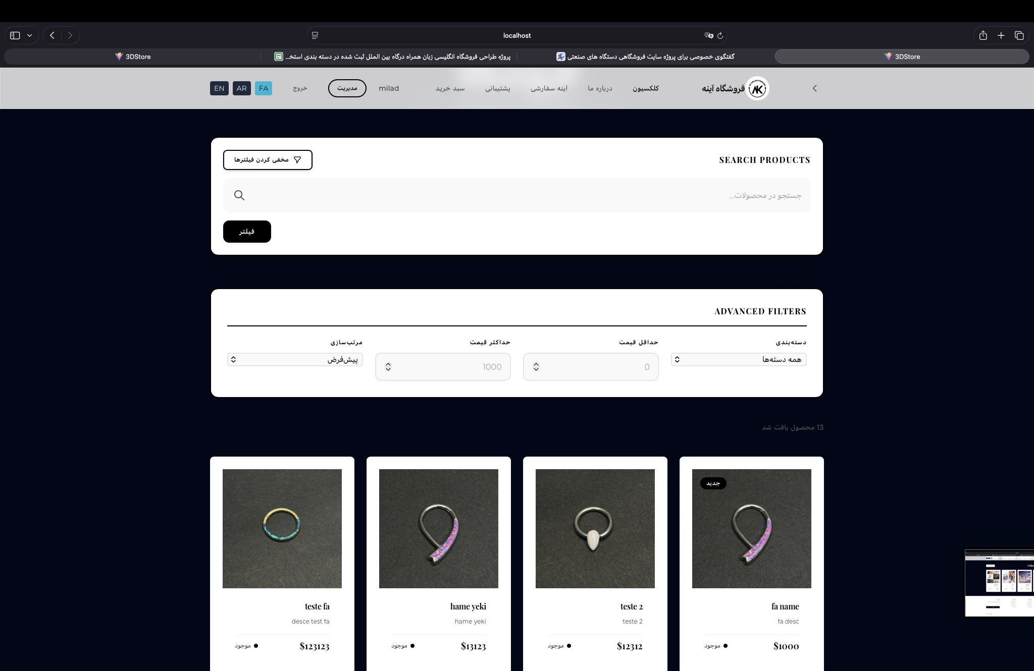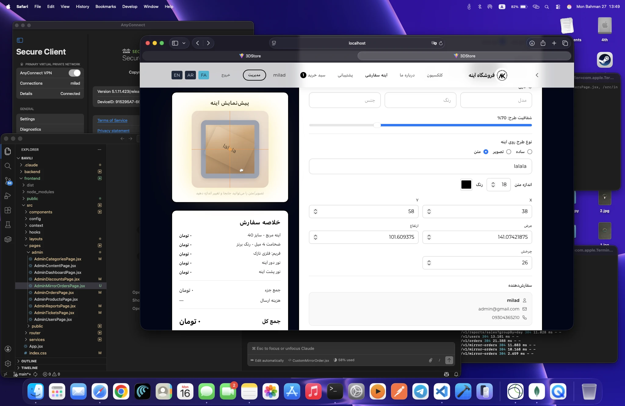 فروشگاه آنلاین با انواع گزارشها و پنل ادمین تکمیل با قابلیت طراحی آینه شخصی سازی شده با قاب و طرح و اندازه دلخواه و ...