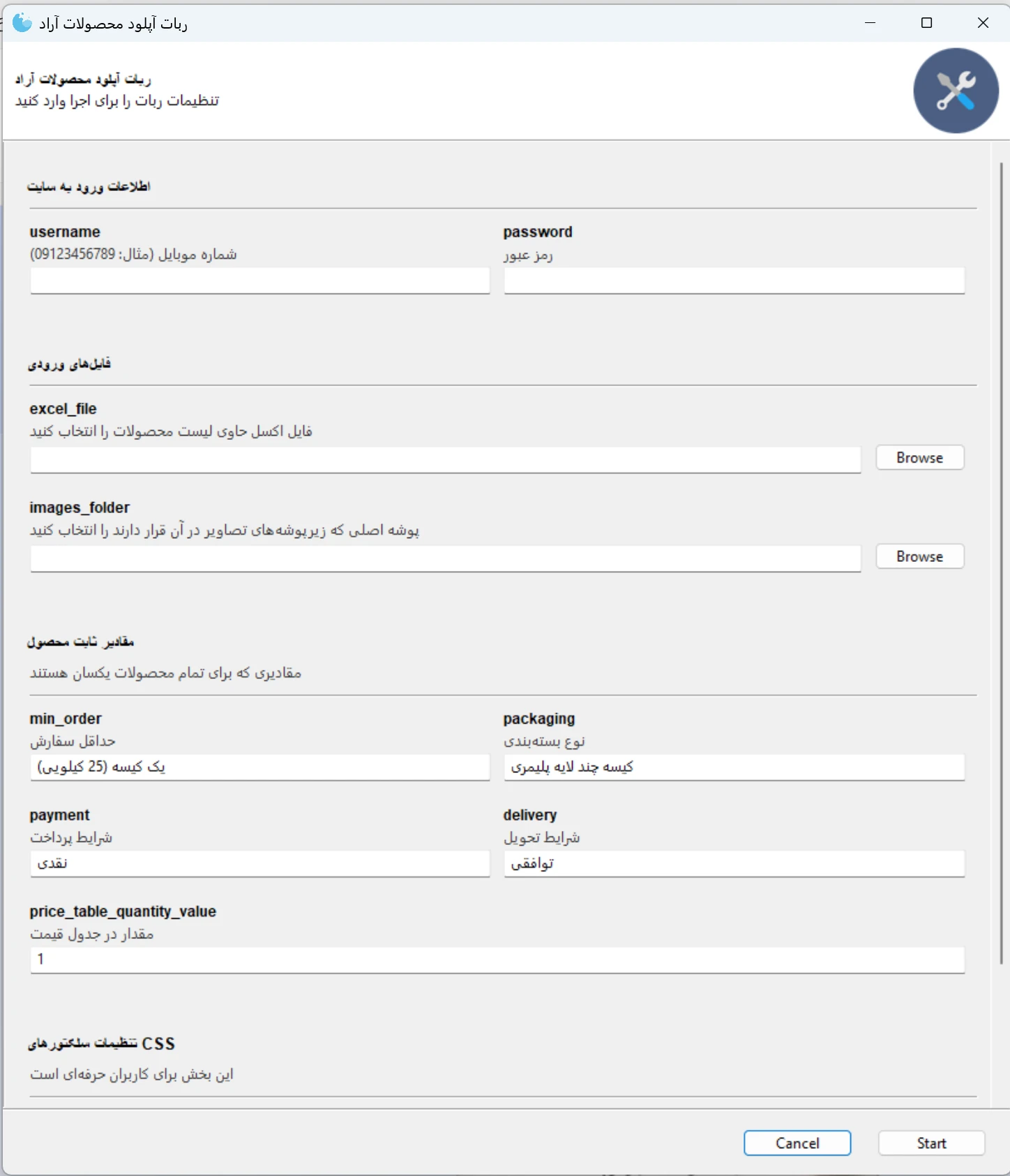 هوشمندی و انعطافپذیری: همانطور که در تنظیمات ربات مشخص است، قابلیت تعریف CSS Selectorها به صورت پویا فراهم شده تا ربات بتواند با تغییرات قالب سایت نیز سازگار شود.
