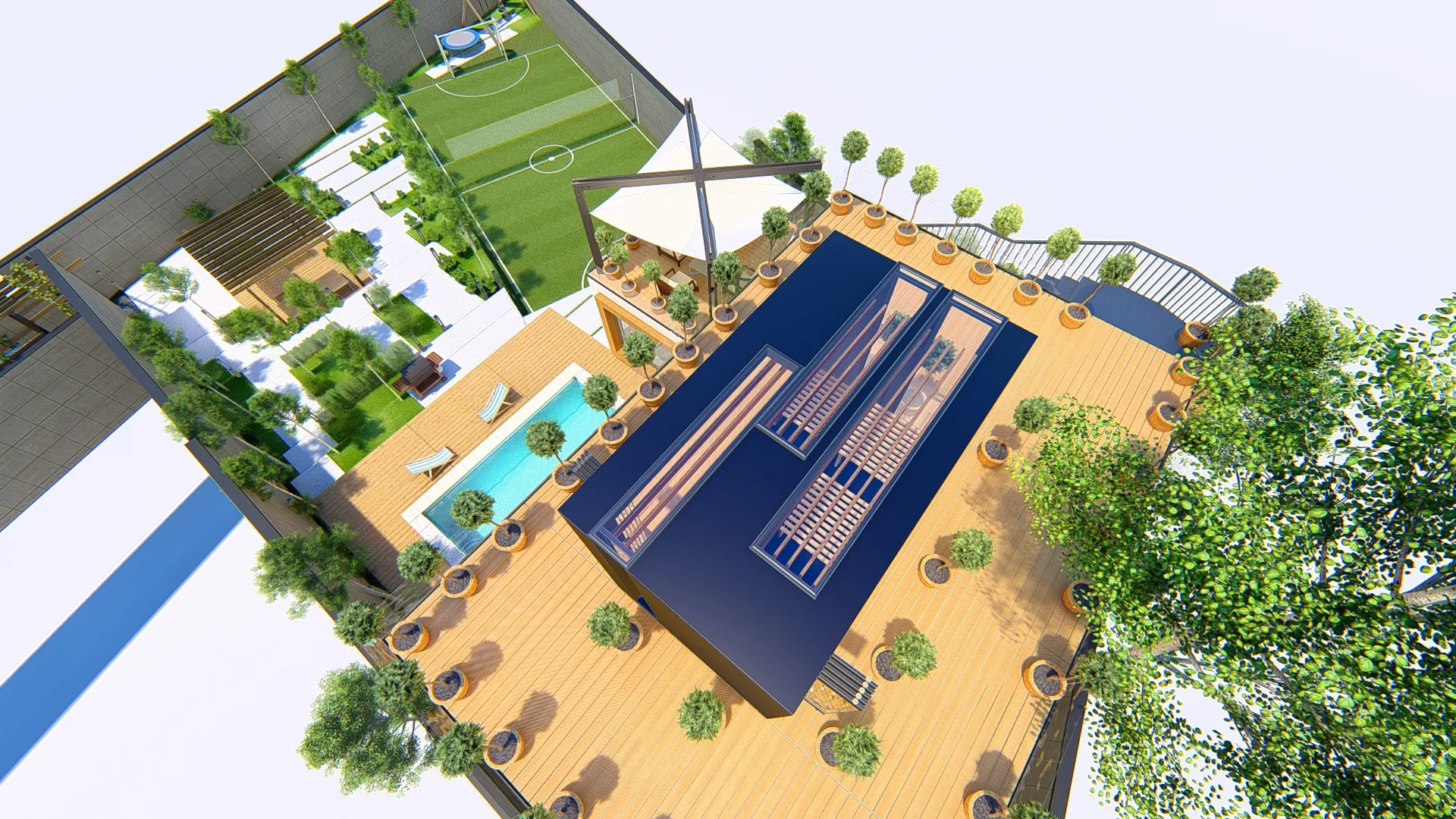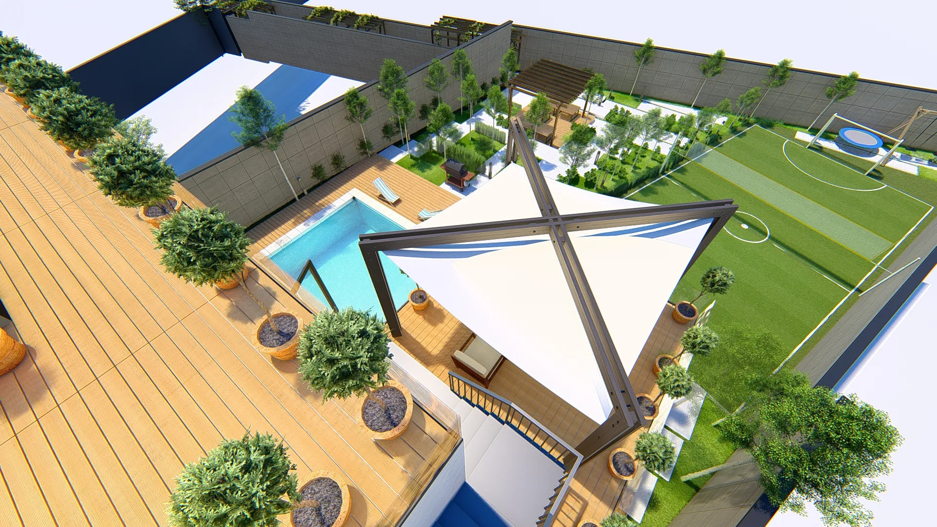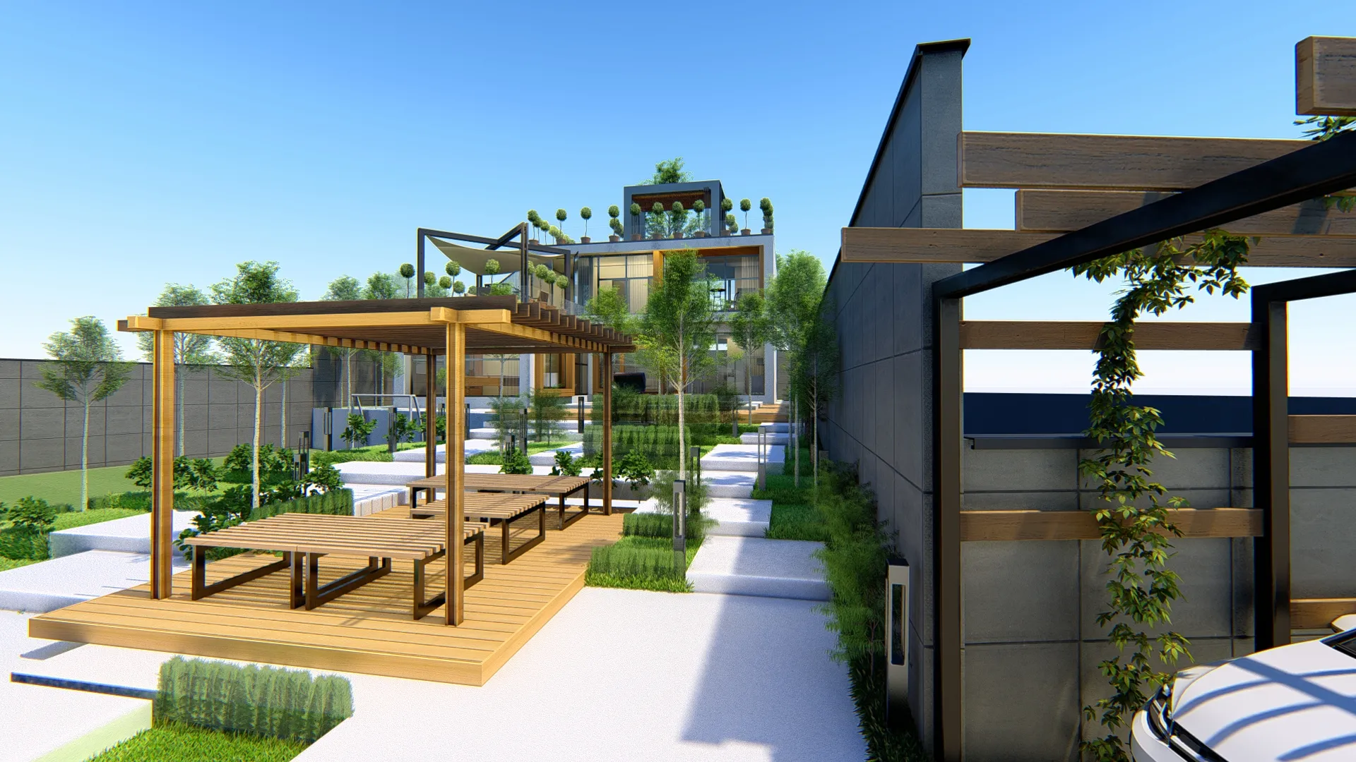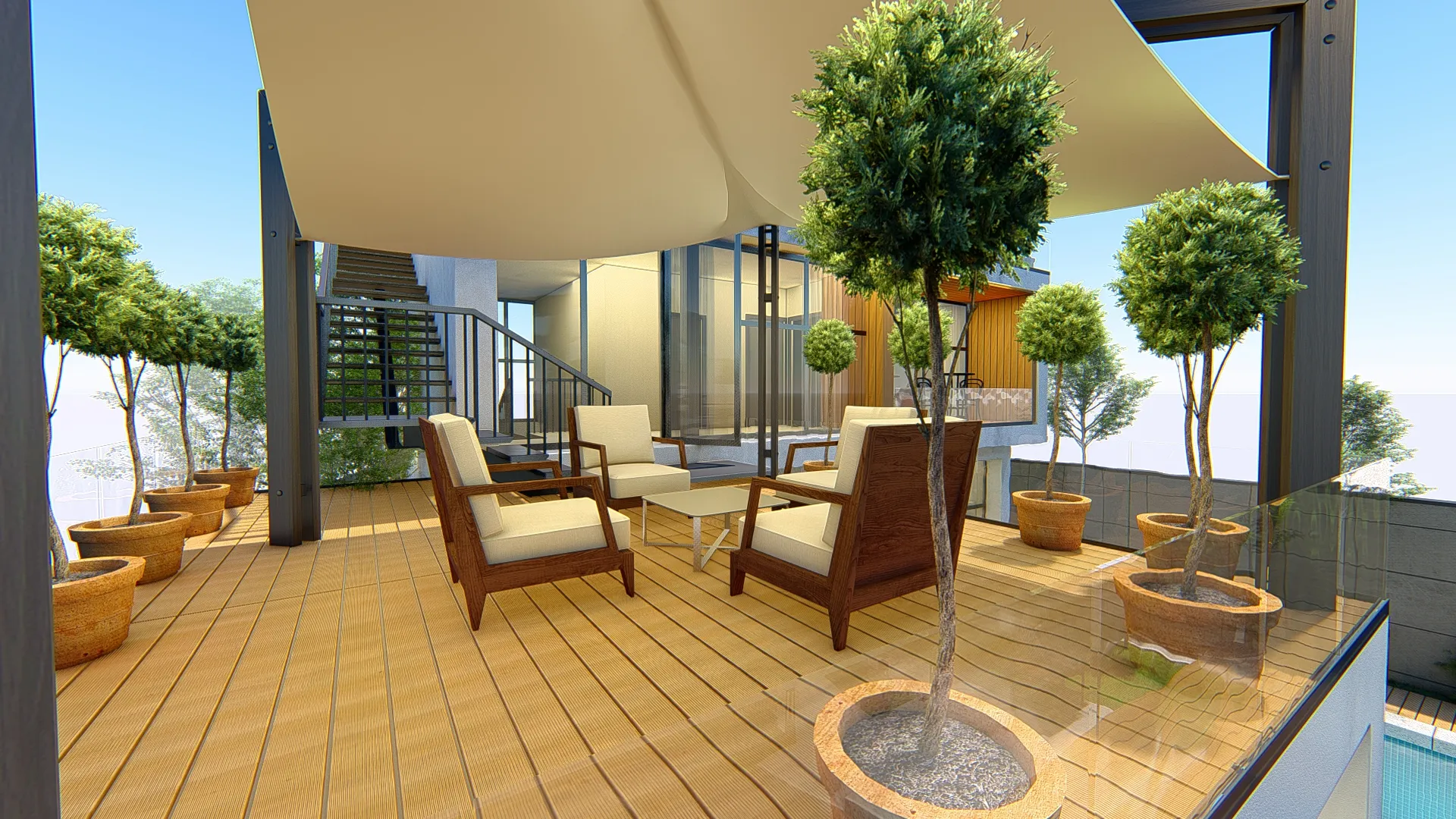 آلترناتیو 2 شامل: طراحی حجم و نمای ویلا و طراحی منظر و طراحی سر در و پارکینگ ورودی