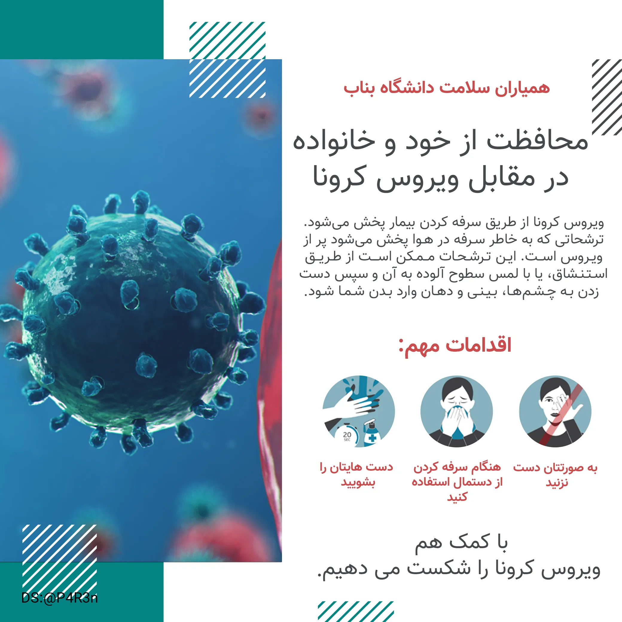 نمونه کار طراحی شده با موضوع محافظت در برابر کرونا برای کانال همیاران سلامت دانشگاه بناب