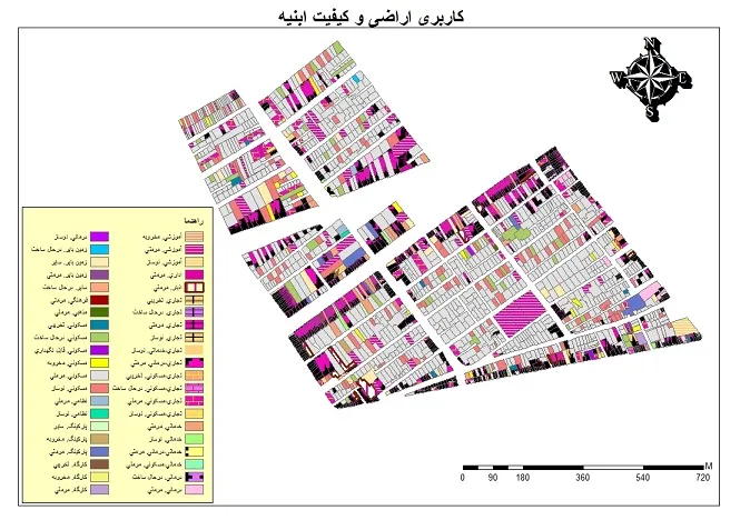 به استفاده از نقشه کد منطقه و برداشت میدانی نقشه مسیرهای دسترسی، کیفیت ابنیه، کاربری اراضی، نماو... تهیه شد