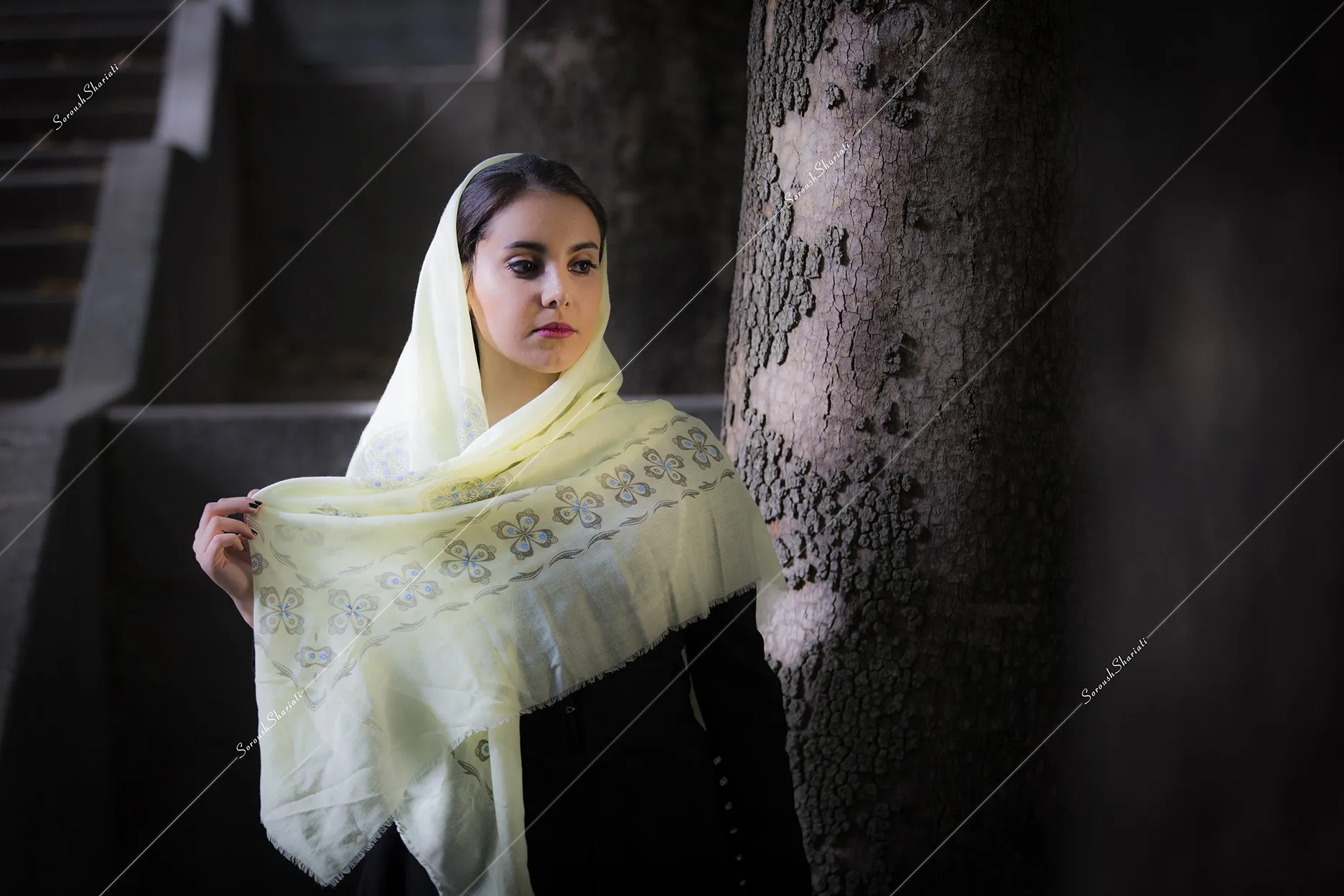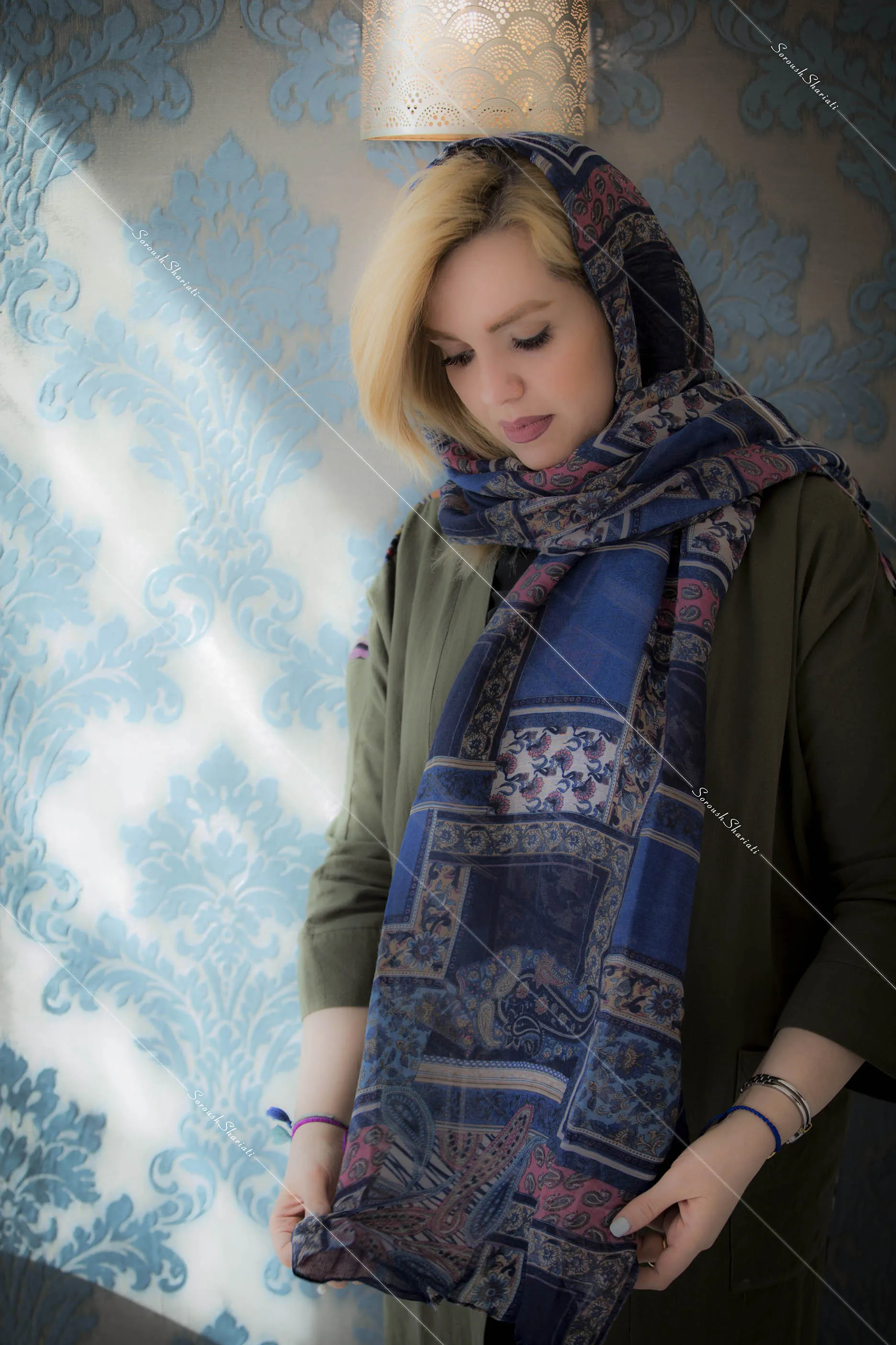 عکاسی تبلیغاتی در فضای باز با نوردهی طبیعی و مصنوعی . برای برند شال و روسری