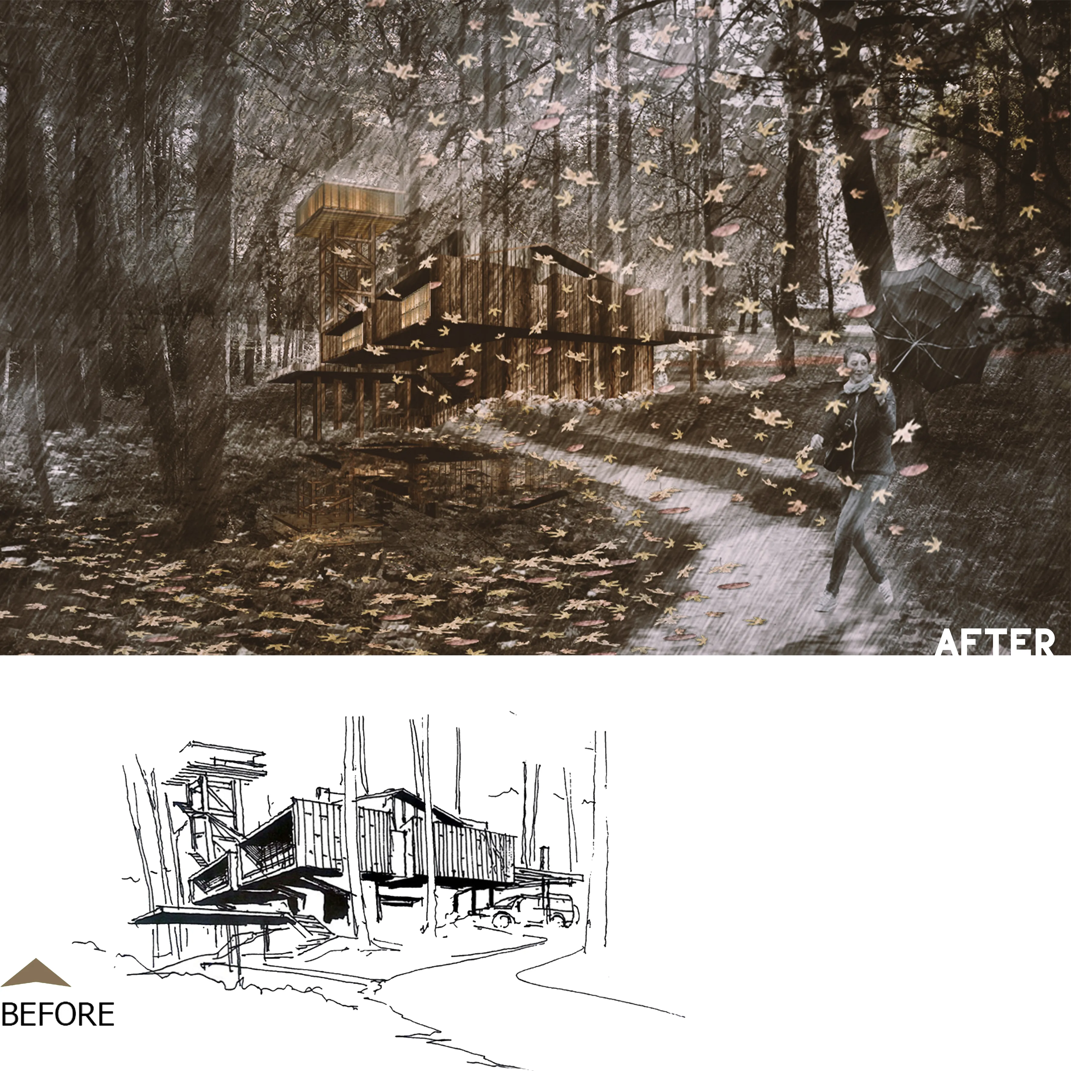 این کاریک اسکیس ساده است که با استفاده از فتوشاپ و تکنیک پست پرو داکشن تبدیل به یک خروجی با کیفیت شده است که براحتی میتوان از آن در شیتهای ارائه ی نهایی استفاده کرد.