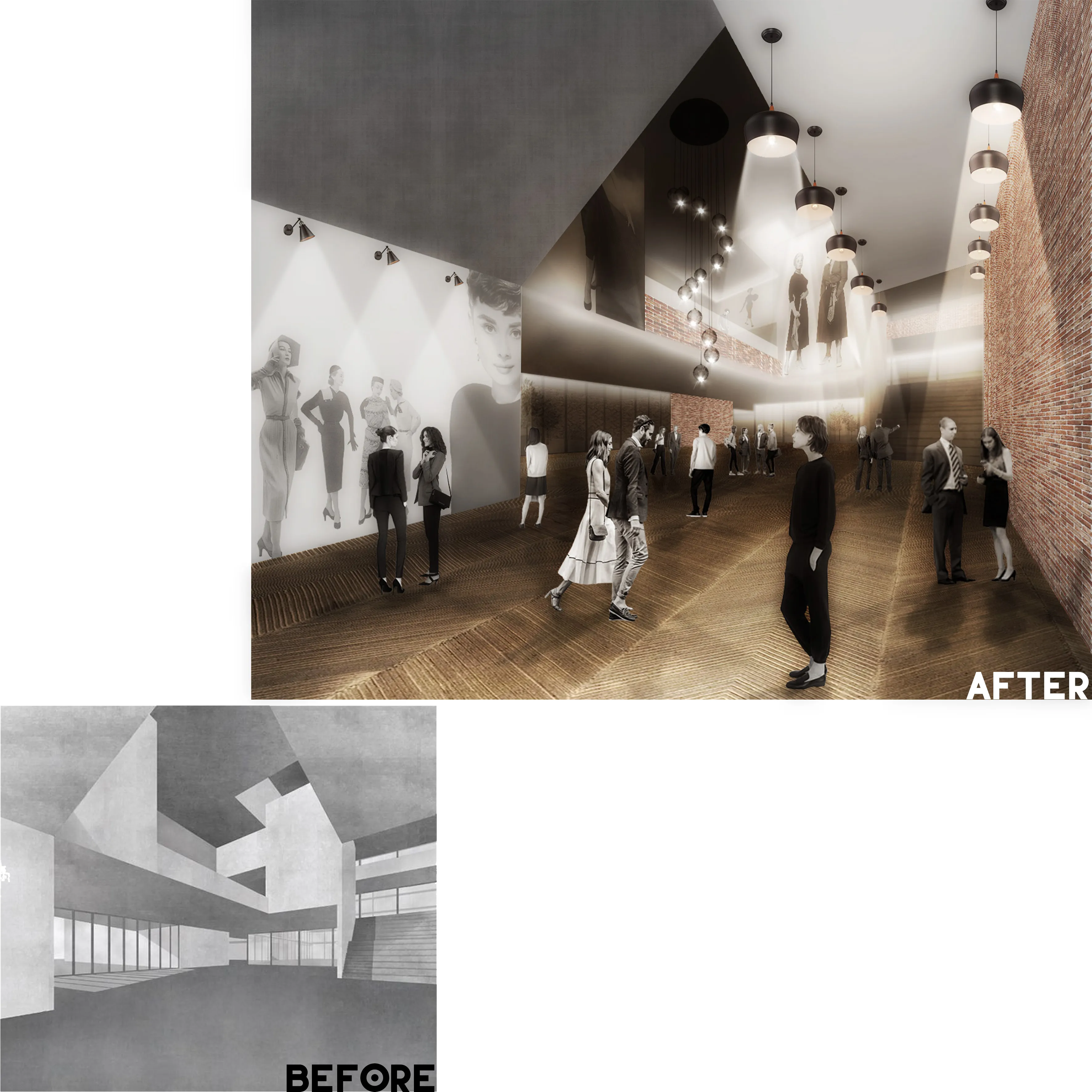 این کار یک رندر خام است که با استفاده از نرم افزار فتوشاپ و تکنیک پست پروداکشن تبدیل به فضای داخلی یک گالری شده است.