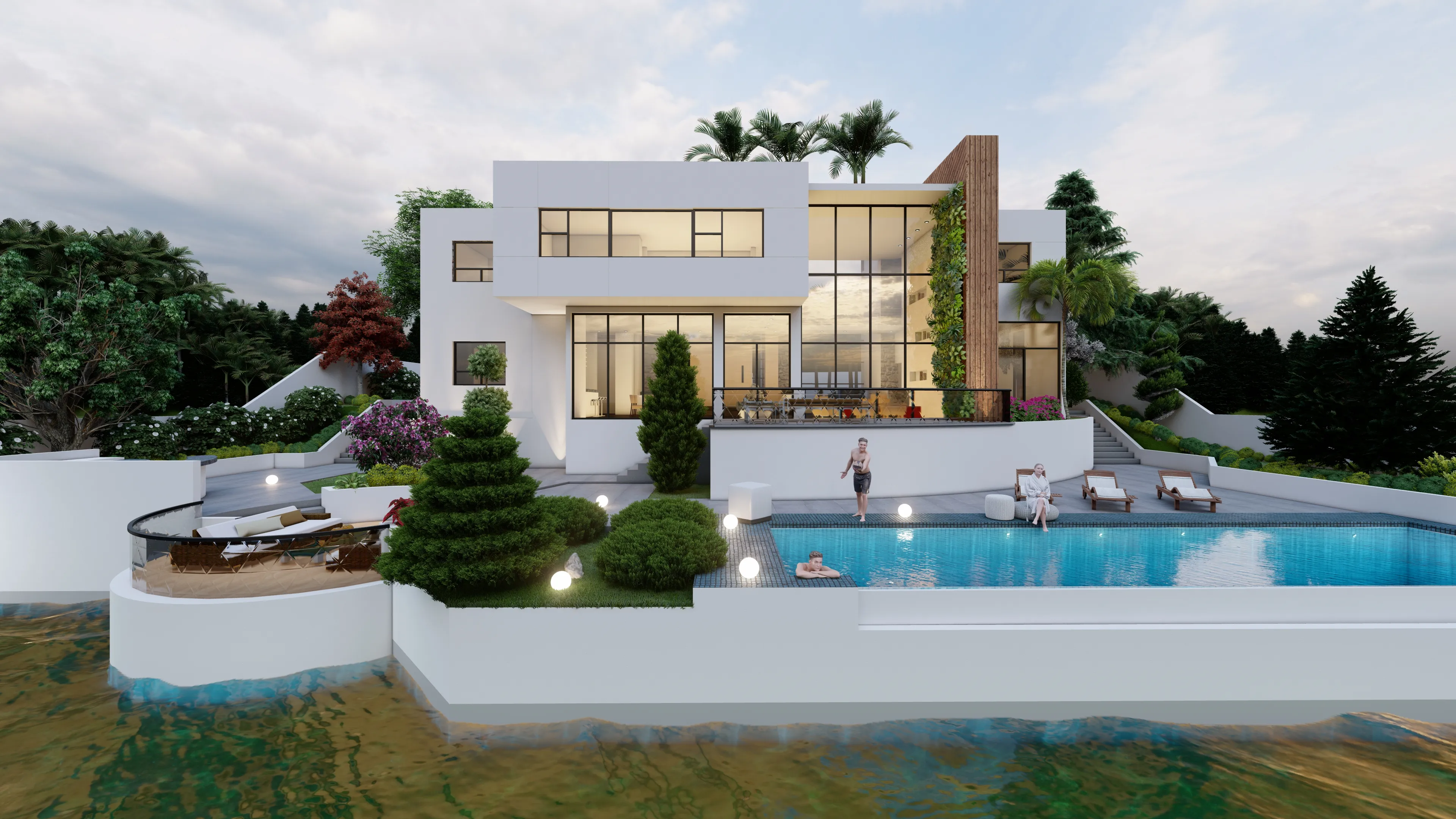رندر خارجی ویلا و محوطه سازی آن