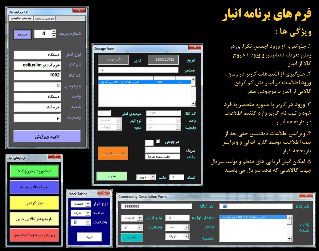 برنامه انبار با ویژگی های ممتاز بر پایه اکسل