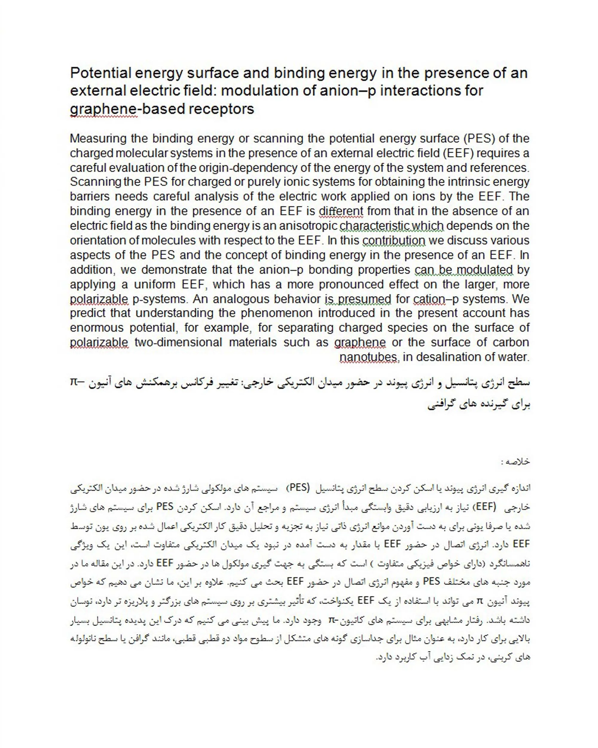اولین صفحه یک مقاله در رشته شیمی محاسباتی را به عنوان نمونه پیوست کردم
