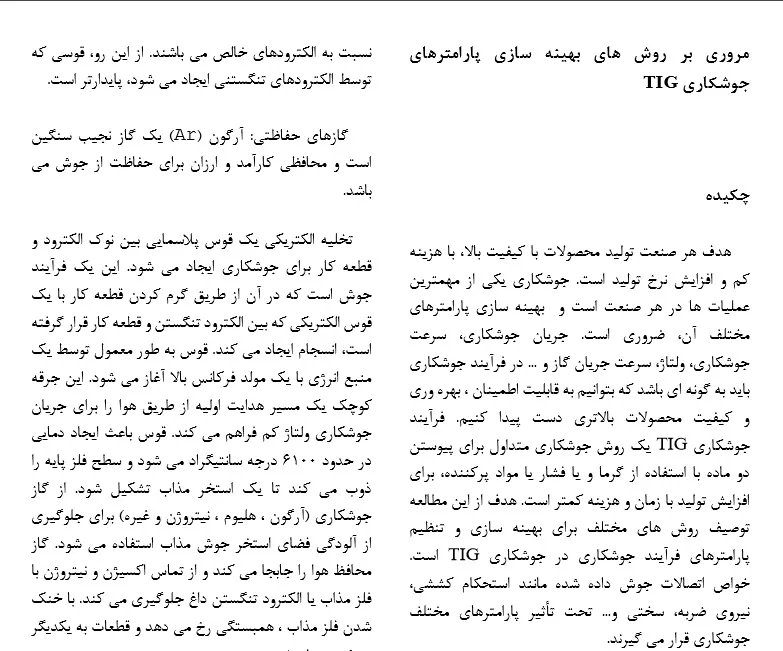 پروژه تخخصی در حوزه مکانیک جوش «روش های بهینه سازی جوش آرگون»